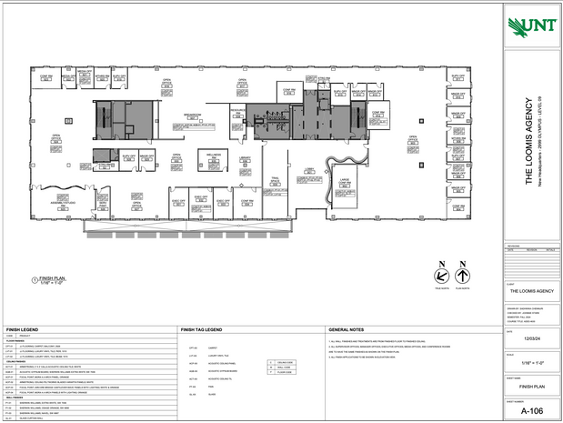 The Loomis Agency's new headquarters is a tangible reflection of its core values of unity, shared success, and integrity. The carefully designed floor plan fosters a collaborative and dynamic environment that encourages employee engagement and a strong sense of belonging. By strategically positioning departments in close proximity, the layout facilitates seamless teamwork and cross-generational interaction. This approach enhances productivity and knowledge sharing. Communal/flow spaces like the breakroom, library, and gallery are centrally located to promote spontaneous employee interaction and connection. Private offices are situated on the perimeter, providing a balance between communal and individual workspaces. By prioritizing these interaction zones at the heart of the design, Loomis underscores its commitment to cultivating workplace culture and meaningful relationships.